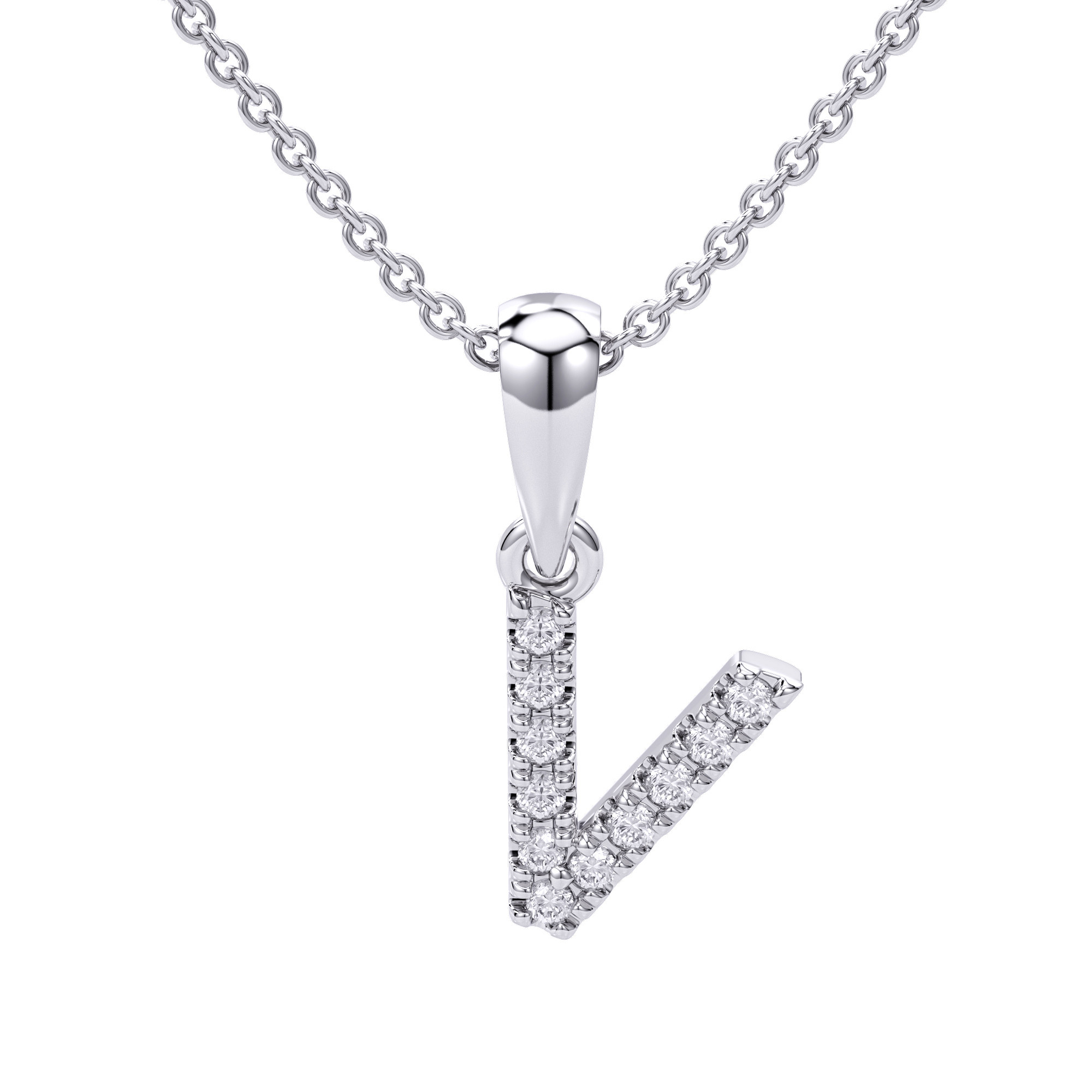 Round Brilliant Cut Diamond Micro Set Initial V Pendant