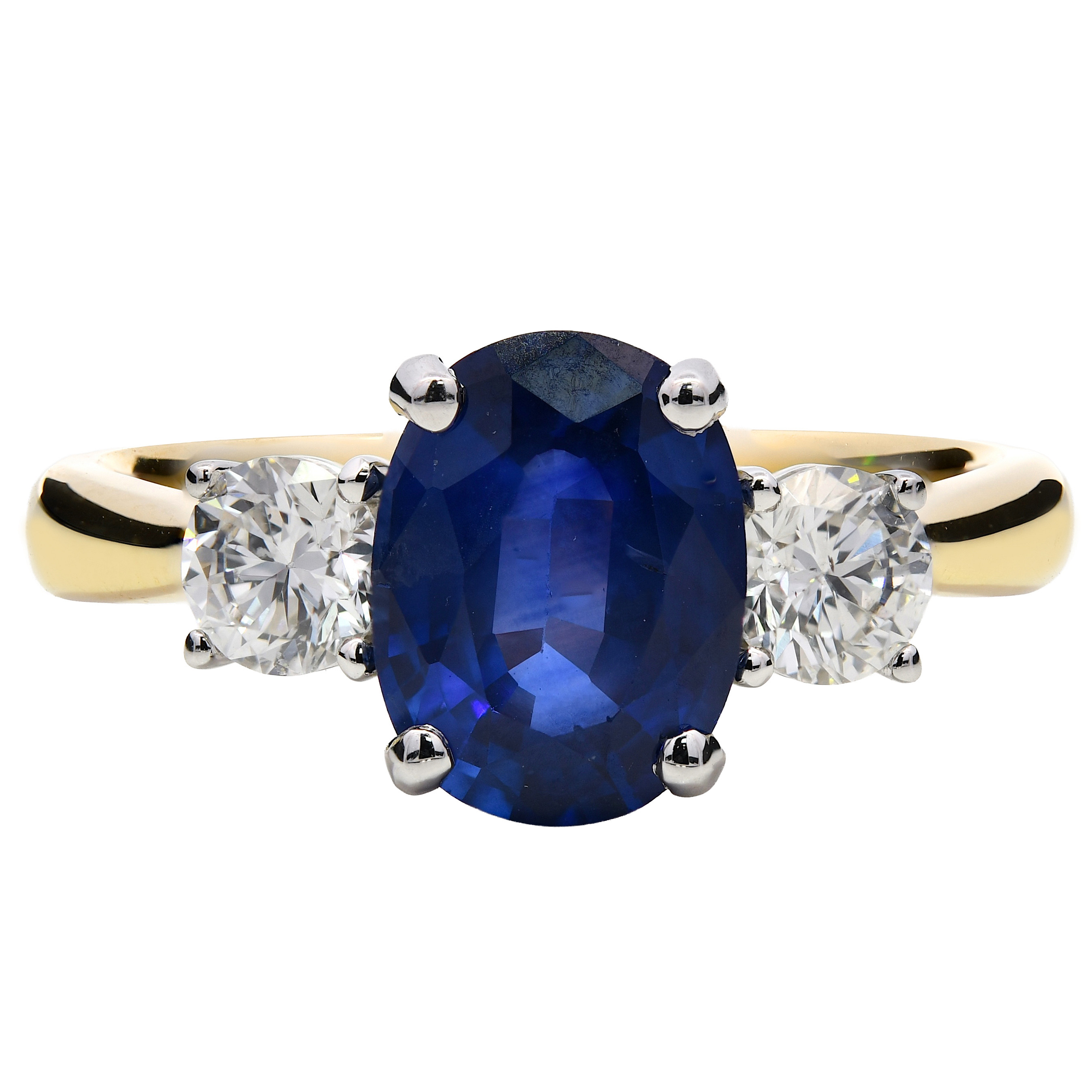 TE96304/OV-CS/0271811c 18K Y/W GOLD OVAL SAP 3 STN RING - CS -1.93ct / D-0.64ct